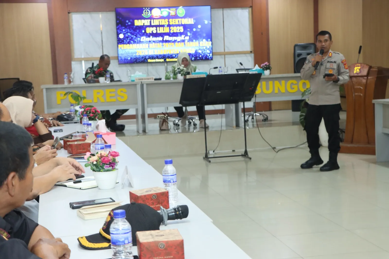 Bungo – Menjelang perayaan Natal dan Tahun Baru (Nataru) 2026, Polres Bungo menggelar Rapat Lintas Sektoral Tahun 2025 di Aula Lantai II Mapolres Bungo, Kamis (11/12/2025) pukul 09.30 WIB.